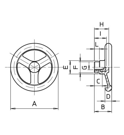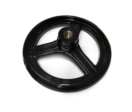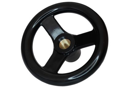 VR3.VOLANTINO A RAZZE CON BOCCOLA FILETTATA PASSANTE E IMPUGNATURA GIREVOLE