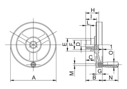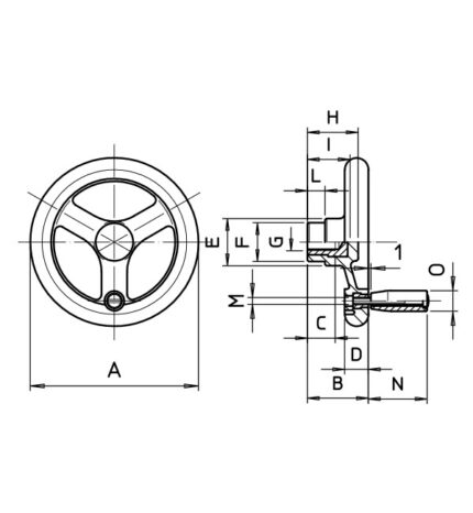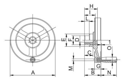 VR1.VOLANTINO A RAZZE CON FORO LISCIO CIECO E IMPUGNATURA GIREVOLE