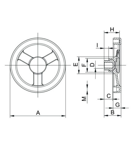VD1.VOLANTINO A DISCO CON FORO LISCIO CIECO E IMPUGNATURA GIREVOLE